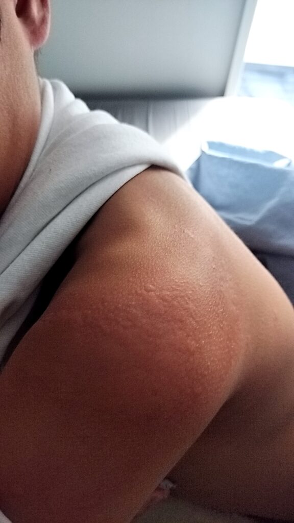 ちなみに、こんな全身あちこちの蕁麻疹が
